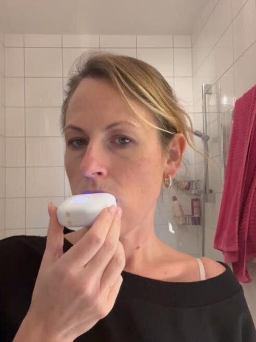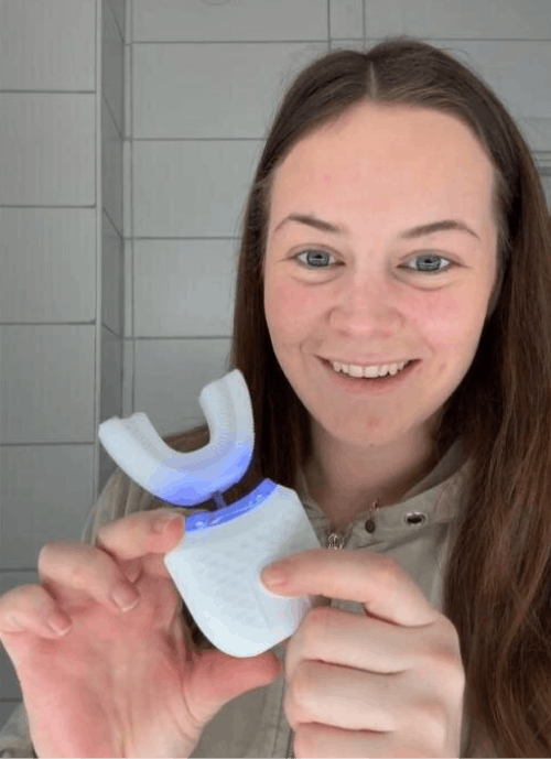 Wybiela zęby i eliminuje przebarwienia dzięki technologii zimnego światła, która używa bezpiecznego, przyjaznego dla szkliwa niebieskiego światła, aby stopniowo wybielać zęby bez powodowania nadwrażliwości.