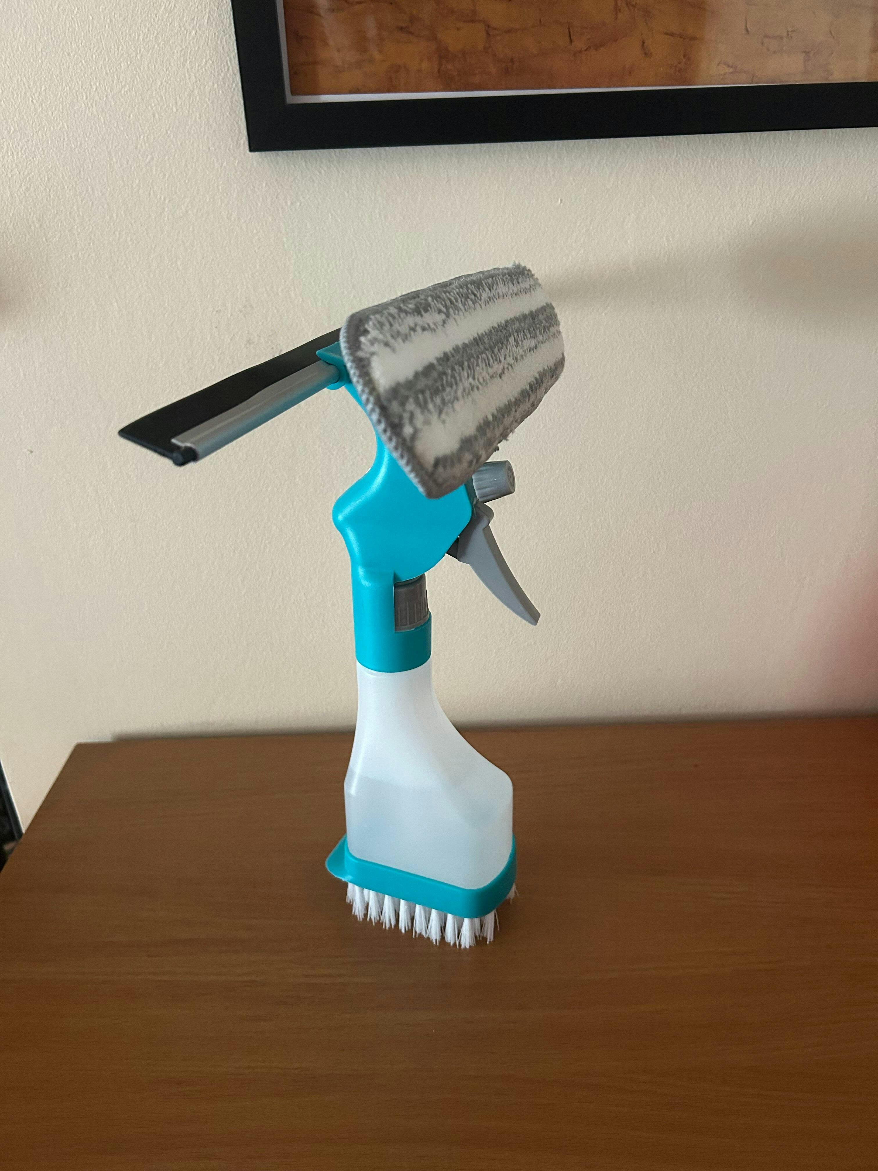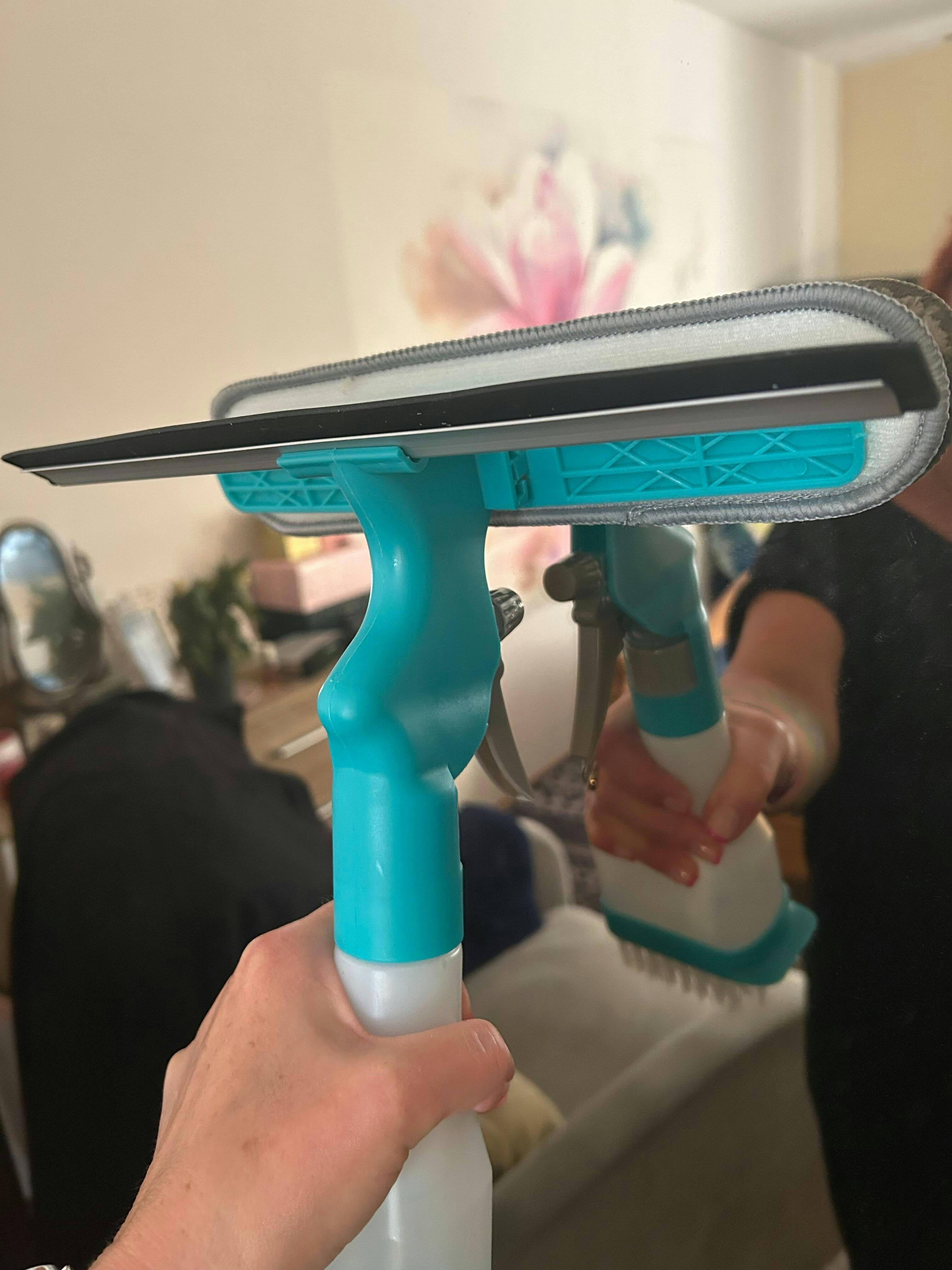 Bo to jedno poręczne narzędzie, które zastępuje kilka akcesoriów do sprzątania. Dzięki funkcji 4 w 1 (spryskiwanie, czyszczenie mikrofibrą, ściąganie wody i szorowanie) szybko i skutecznie umyjesz szyby, okna, lustra, kabiny prysznicowe, płytki czy szyby w aucie – bez smug i bez wysiłku. Oszczędzasz czas, miejsce i nerwy. Wszystko, czego potrzebujesz, masz pod ręką w jednym wygodnym urządzeniu.